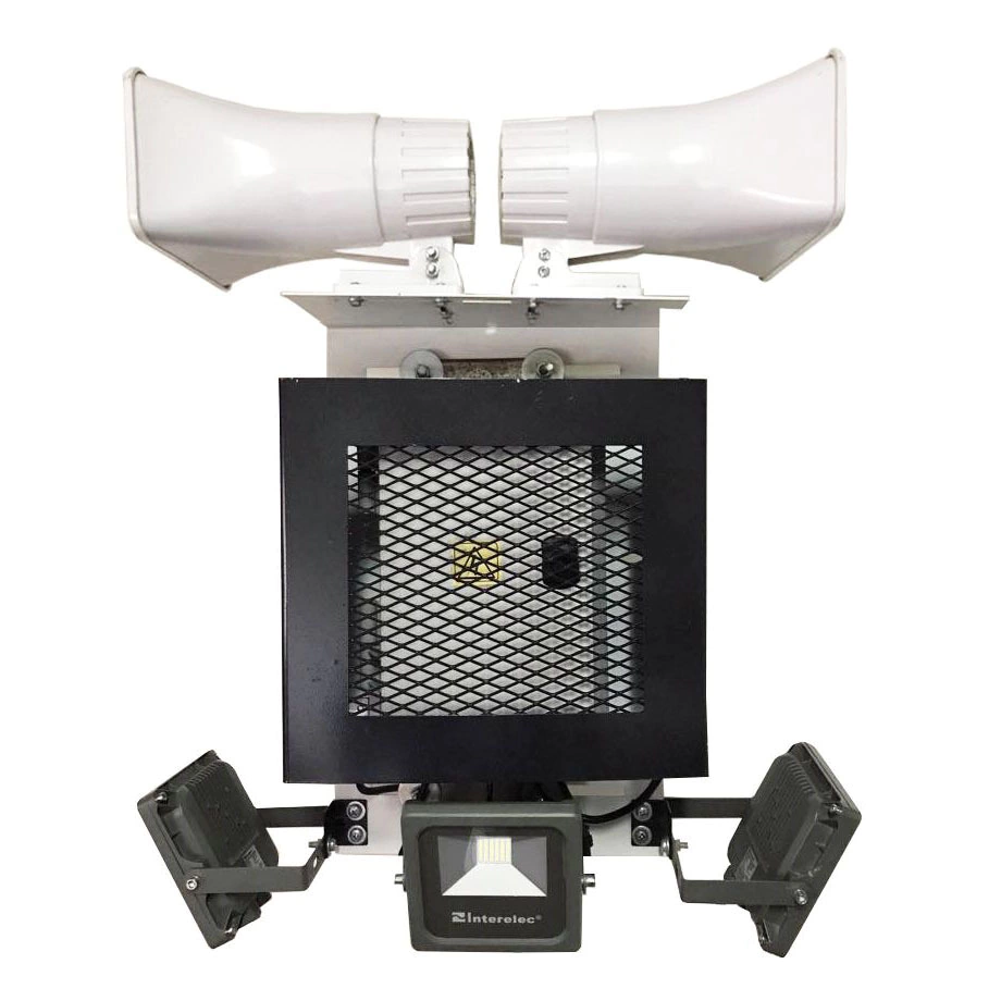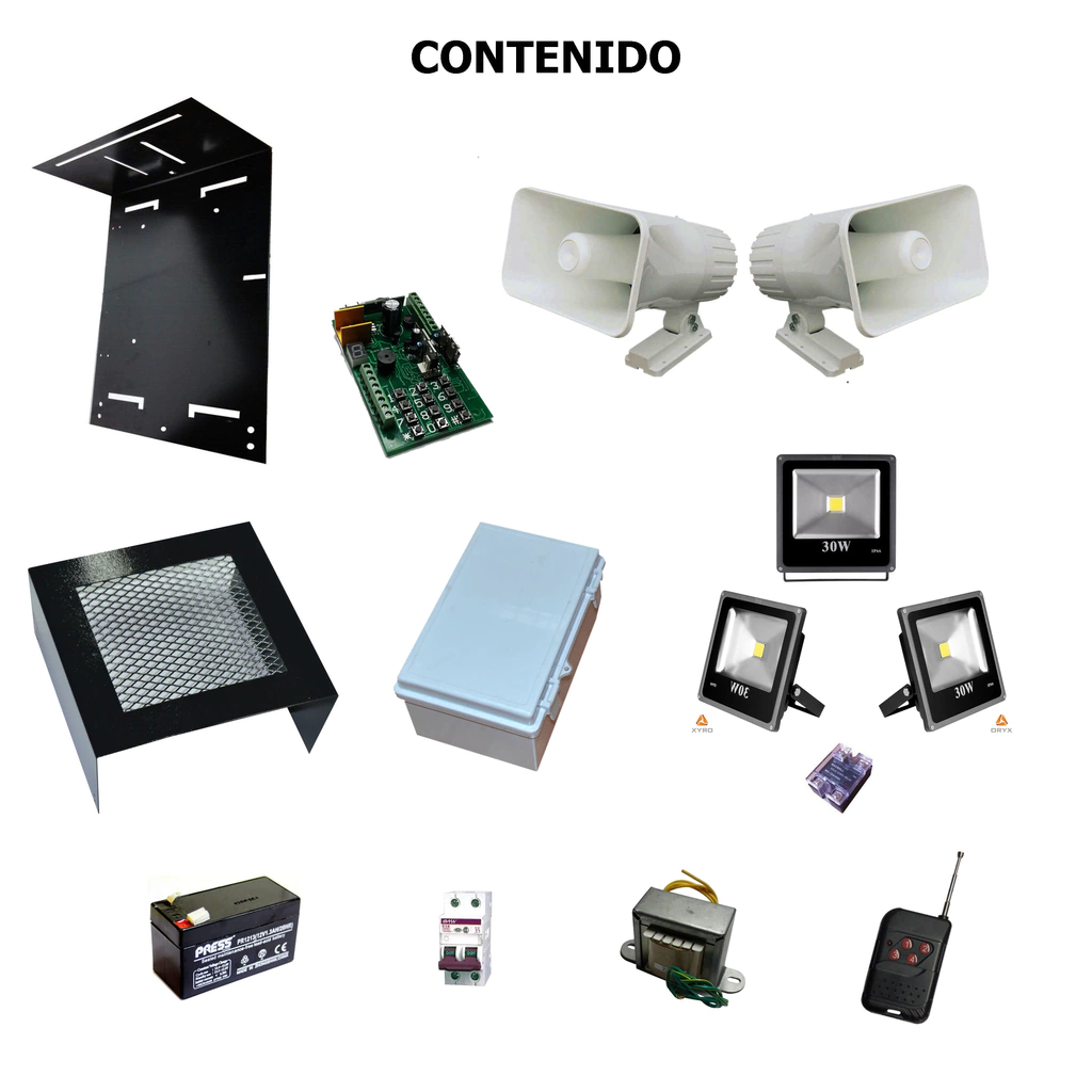 * Los reflectores se encenderán junto al sonido para cambiar la fisonomía de la calle aumentando la luz para una mejor visión y complemento de disuación adicional a la bocina.